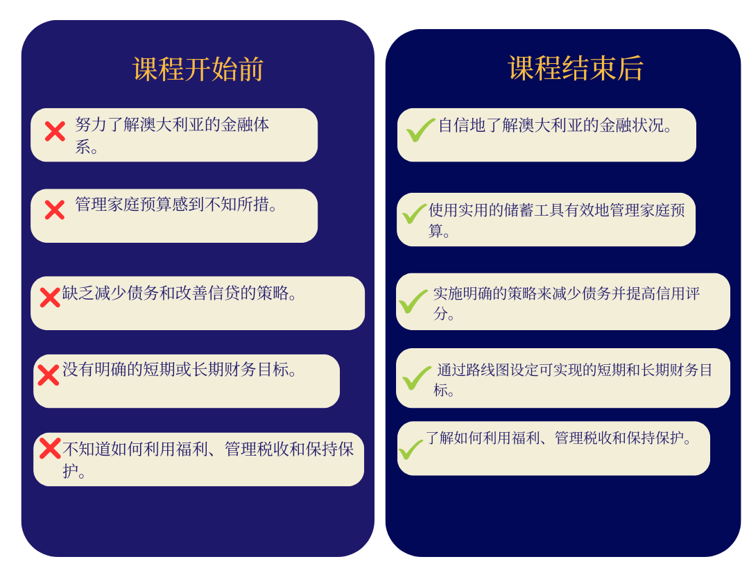 Welcome to our 6-Weeks Financial Literacy Course, designed specifically for new migrant families looking to navigate the Australian financial system with confidence. This course bridges the gap between cultural and financial knowledge, empowering you to build a secure financial future for your family in your new home.